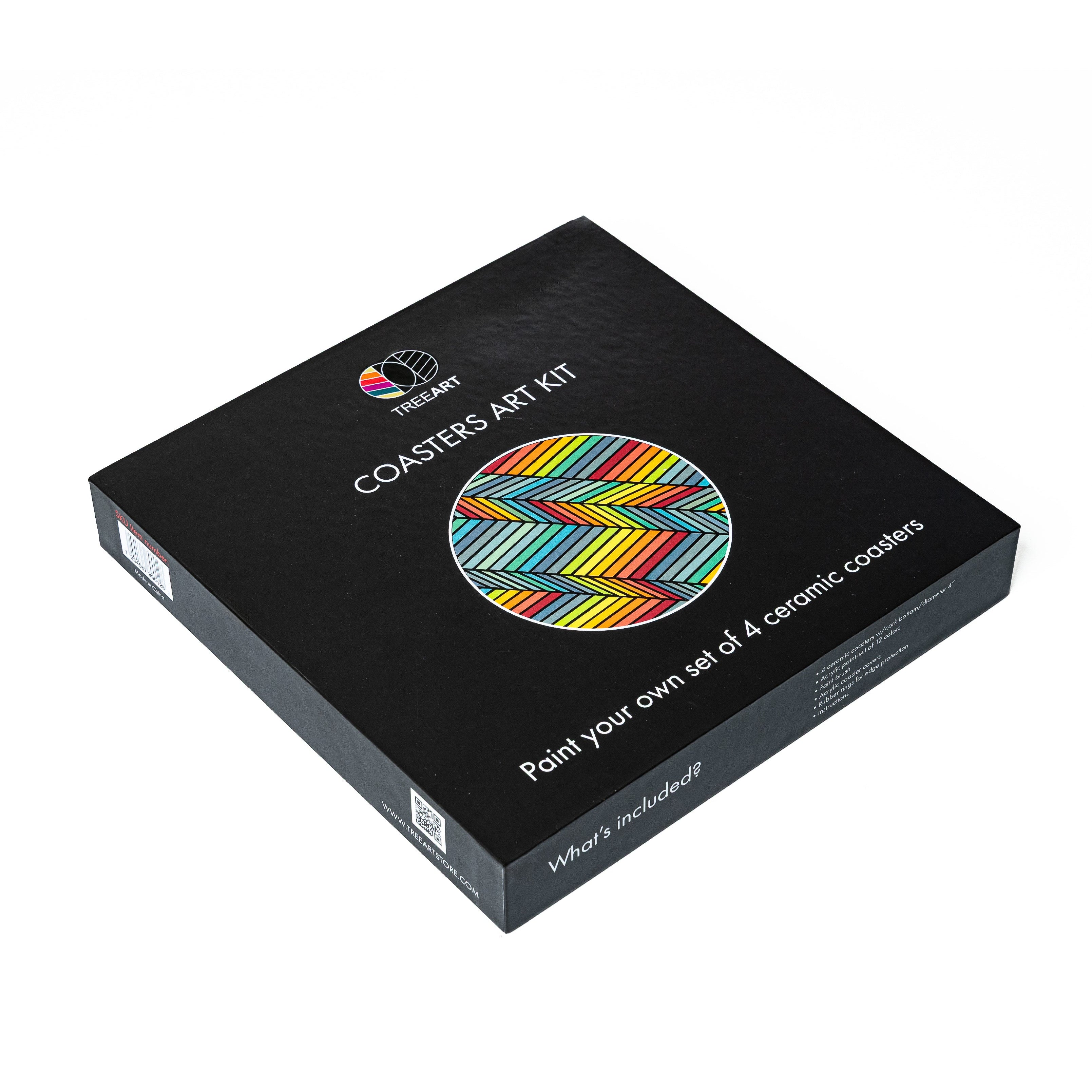 Create your own set of hand-painted coasters with this all-in-one ceramic painting kit. Each kit comes with four (4) coasters featuring a numbered black-and-white design, a smooth acrylic paint set, two (2) fine brushes, and protective acrylic covers with silicone rings to seal your finished artwork. Paint, seal, and enjoy your coasters as functional décor that brings color and personality to any table.