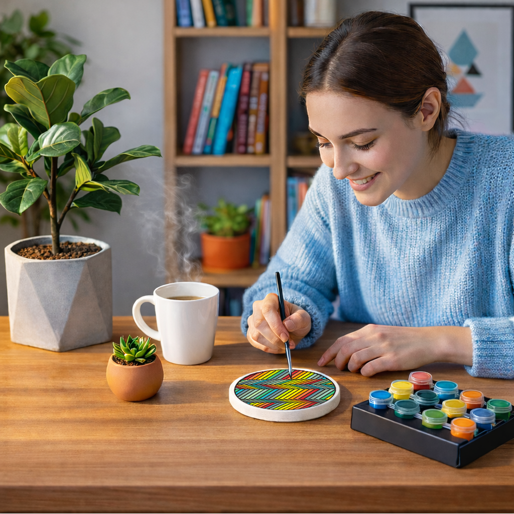 Each coaster is crafted from high-quality ceramic with a smooth, pre-printed surface designed for painting. Ceramic provides excellent durability and a sleek finish that highlights the painted designs. The cork backing ensures a non-slip grip and protects furniture from scratches and scuffs, making these coasters as functional as they are beautiful.